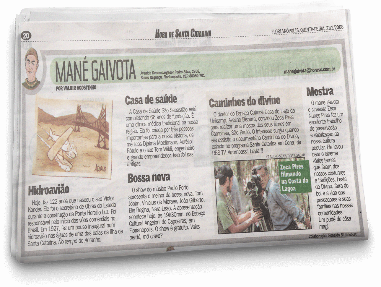 "Ao documentar aspectos religiosos e culturais de Florianópolis, enraizados na migração açoriana, Caminhos do Divino faz o registro apaixonado da marca deixada, pela fé no Espírito Santo, em gerações e gerações de catarinenses. Um curta, na duração, um milagre de realização. . É emocionante".