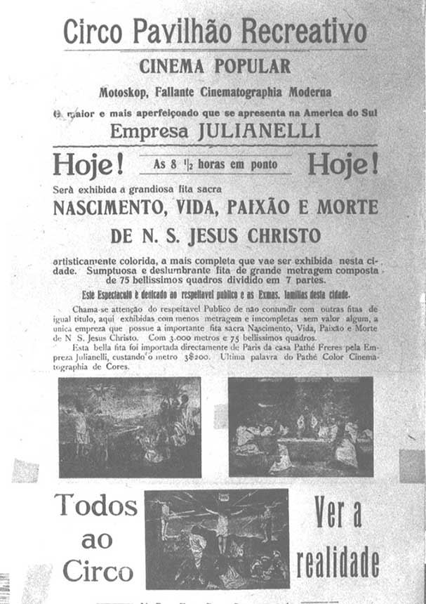 Numa interpretação atual, o panfleto revela uma forma de propaganda apelativa e sensacionalista, para os olhos da época, nem tanto. Naquele momento, o cinema ainda era apresentado apenas como mais uma atração num circo de variedades, ou seja, o cinema era ainda um coadjuvante. O historiador francês Marc Ferro afirma que, “o filme era considerado como uma espécie de atração de quermesse”. Embora já estivesse causando grande curiosidade nos mais atentos e fechando o espetáculo do “Circo Variedades”, a sétima-arte apenas iniciava seu processo mágico de persuasão de aficionados no Estado, que a tornou a grande arte do século XX. De cidade em cidade, José Julianelli foi, pouco a pouco, se convertendo num personagem da região, mas sua grande popularidade estava, também, apenas começando.
