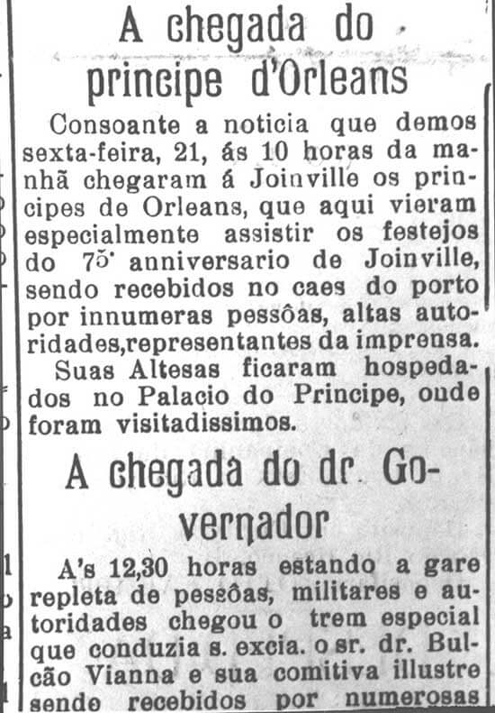 Conforme noticiamos, realisaram-se bellissimas festas commemorativas, tendo a população posto a rua um prestito allegorico, allusivo á entrada da primeira leva de immigrantes que enfretou as mattas virgens de Blumenau.